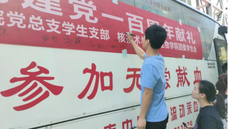 2021年6月5日,上午9点,核技术与化员工物公司党总支员工支部和团委员工会联合主办“一腔热血为建党一百周年献礼”义务献血活动在中心校区东区拉开帷幕。